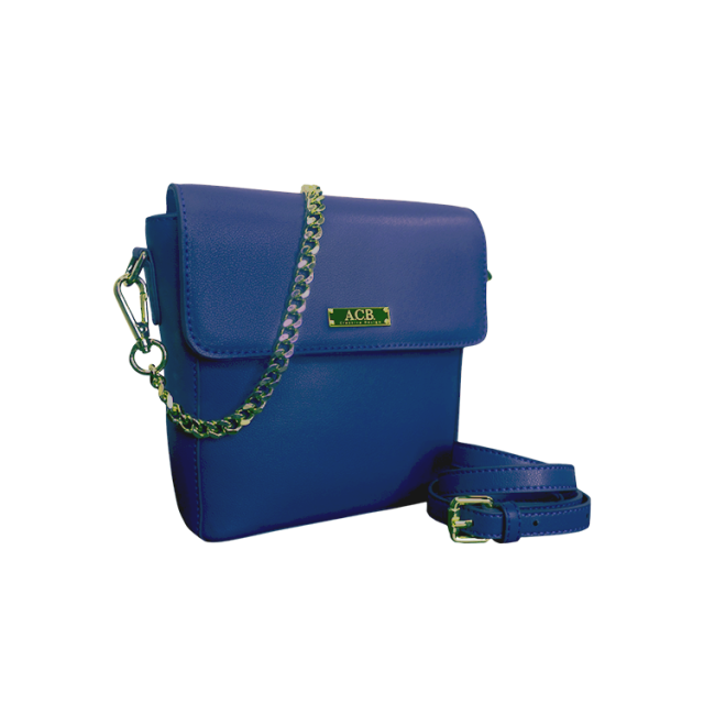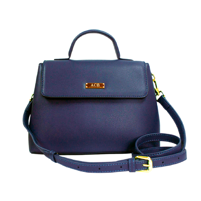 A.C.B. -壓紋真皮小盒子袋(深藍色)