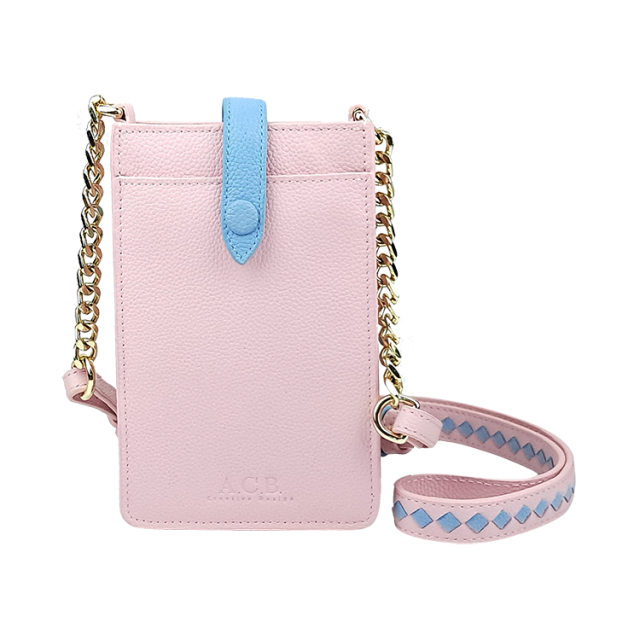Sweet Candy - 雙色拼織皮電話袋(粉紅拼藍色)