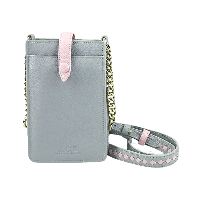 Sweet Candy - 雙色拼織皮電話袋(灰拼粉)
