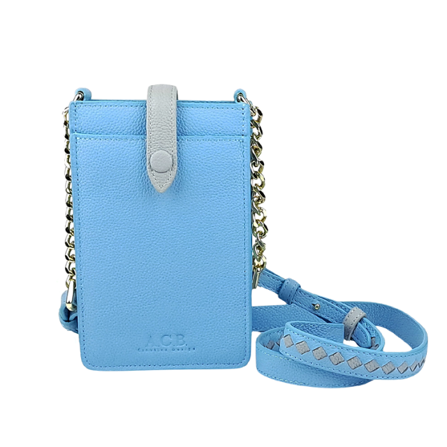 Sweet Candy - 雙色拼織皮電話袋(藍拼灰色)