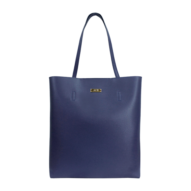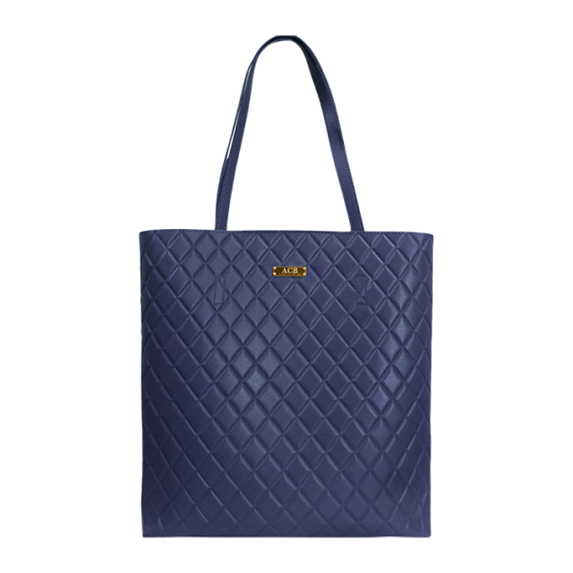 A.C.B. - Classic Stamped Diamond Pattern Leather Tote Bag (Navy)
