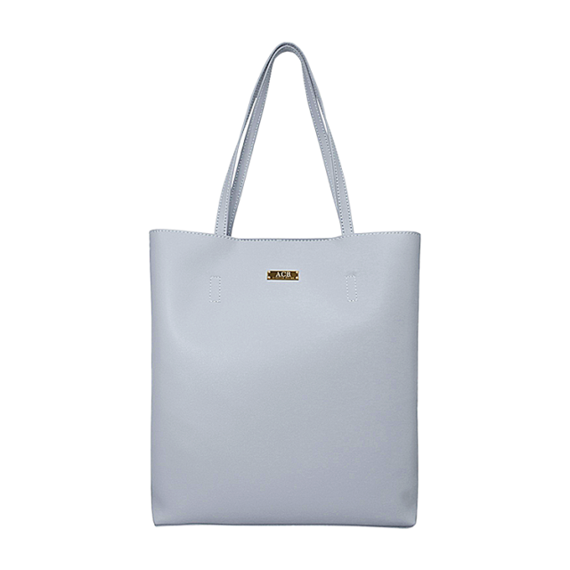 A.C.B. - Classic Stamped Diamond Pattern Leather Tote Bag (Grey)